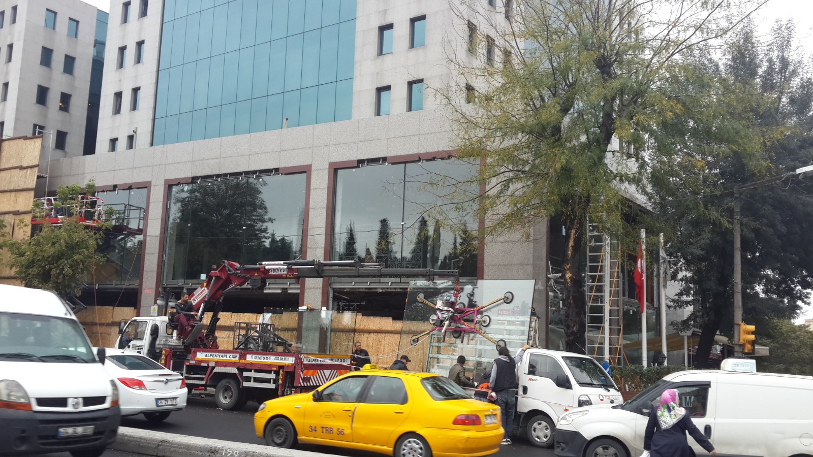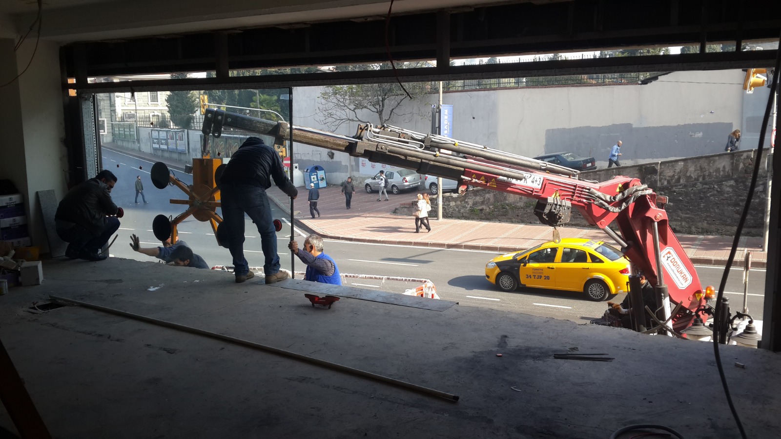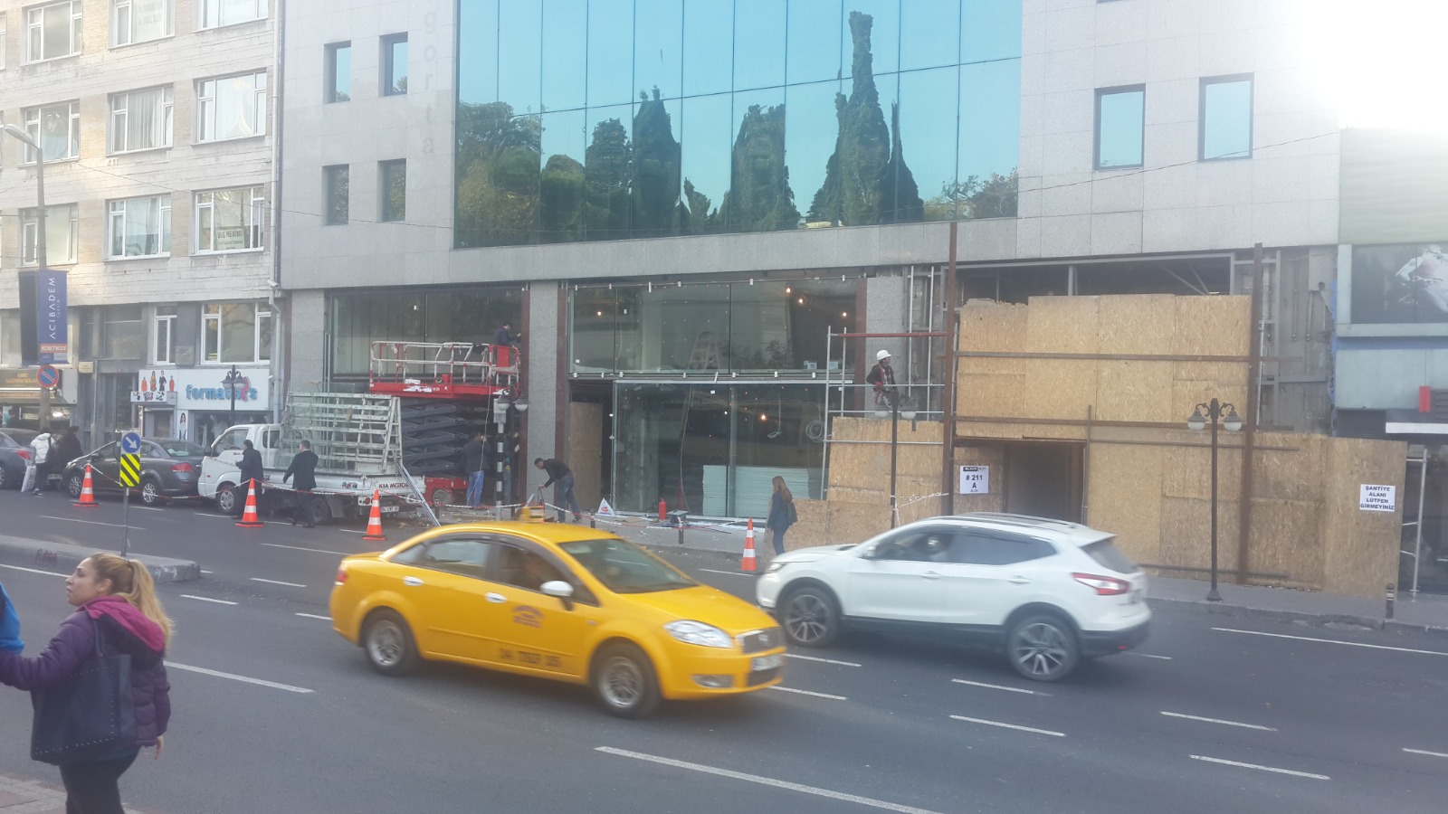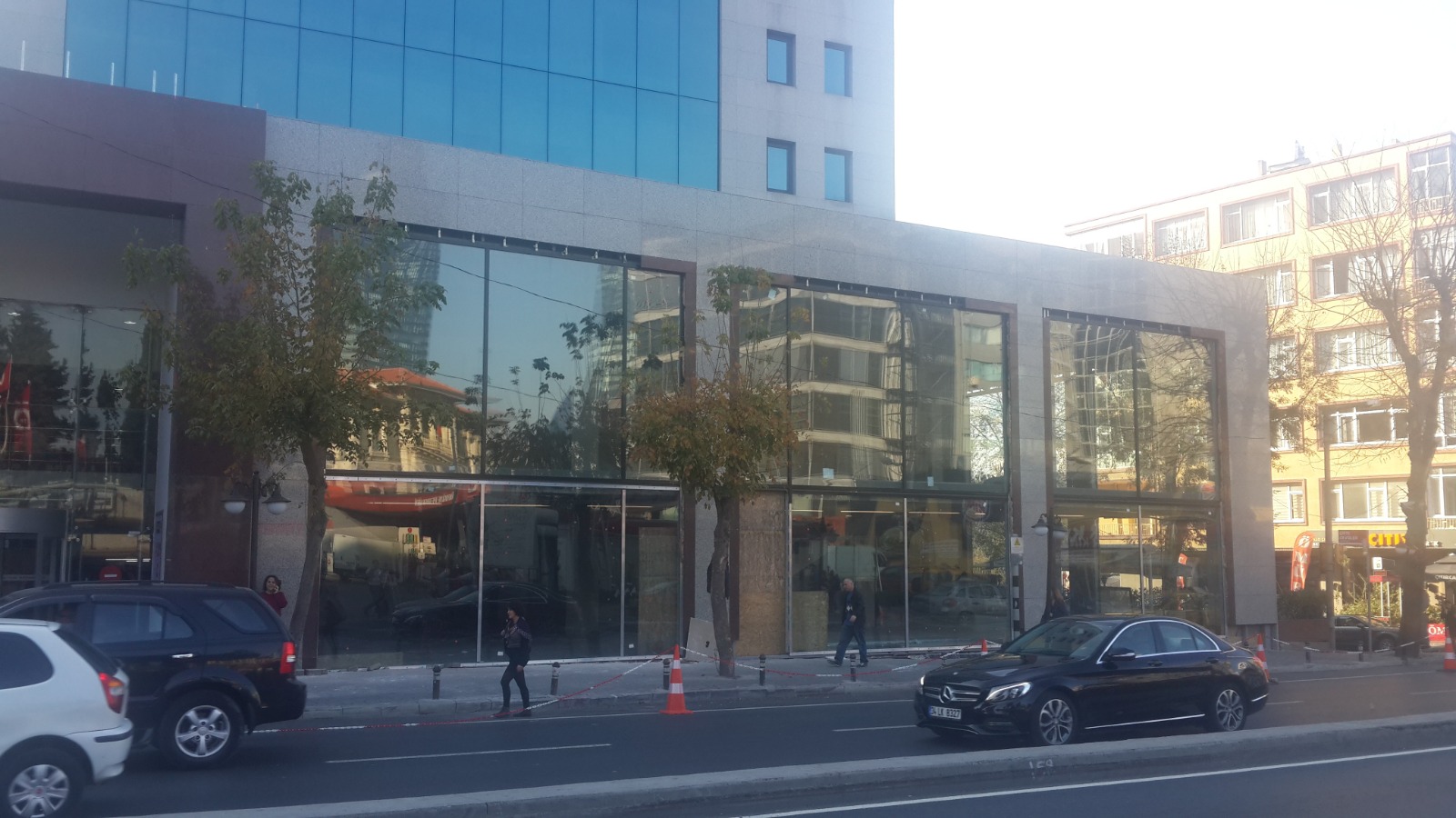 Bu projemizde, dükkan girişlerinde ferahlığı ve görünürlüğü maksimize eden tavana kadar uzanan geniş cam yüzeyler kullanılmıştır.