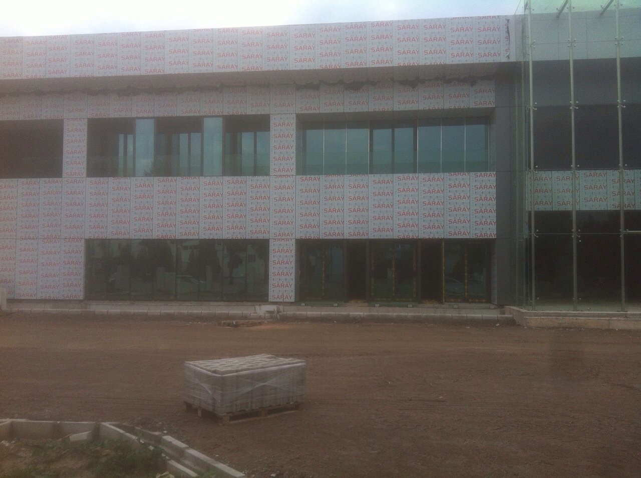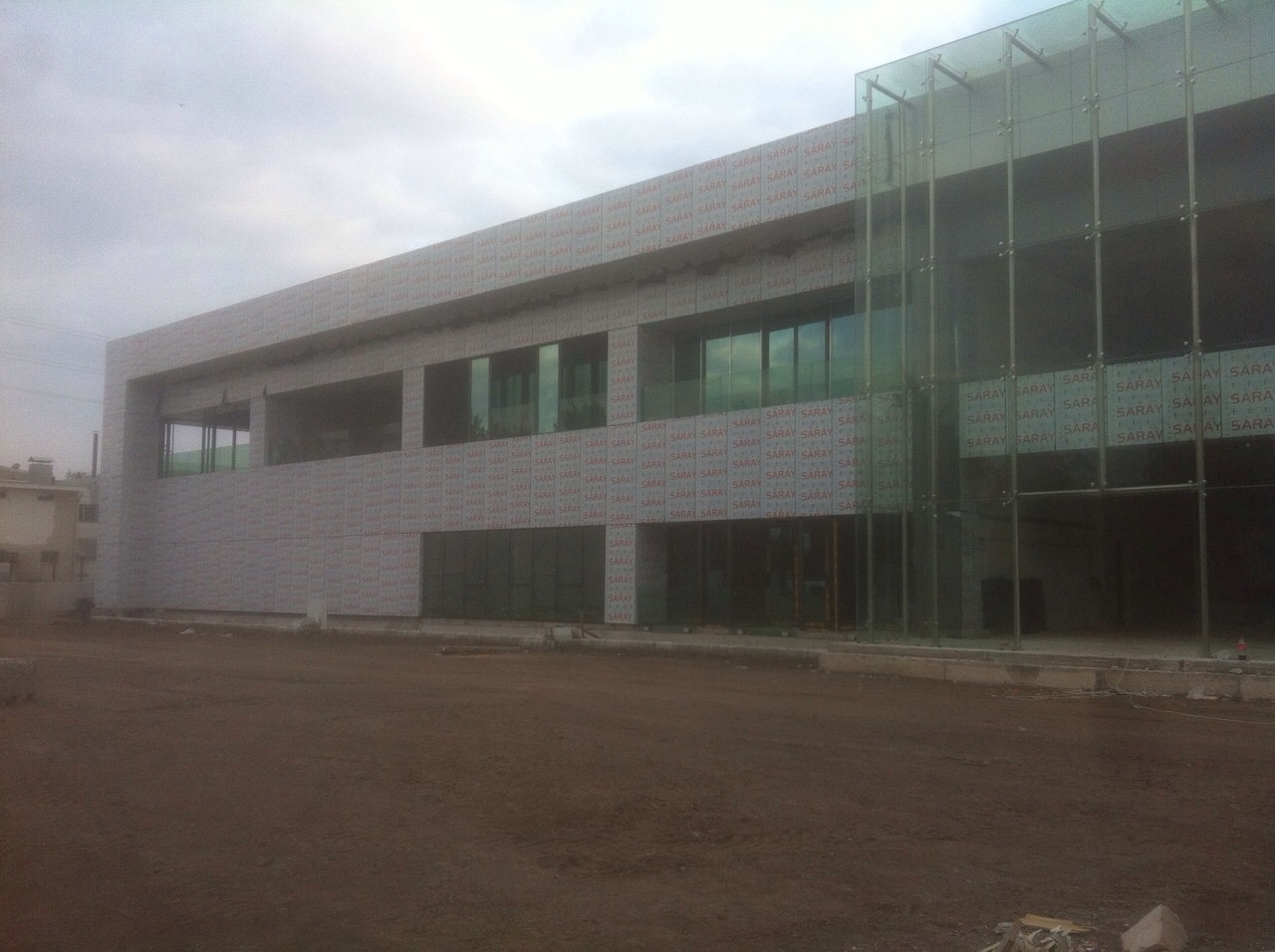 Yapının dış cephesinde tercih edilen dayanıklı kompozit paneller, uzun ömürlü ve estetik bir çözüm sunarken; geniş açıklıklarda uygulanan cam sistemleri doğal ışık kullanımını artırarak iç mekânlara ferah ve çağdaş bir görünüm kazandırmıştır.