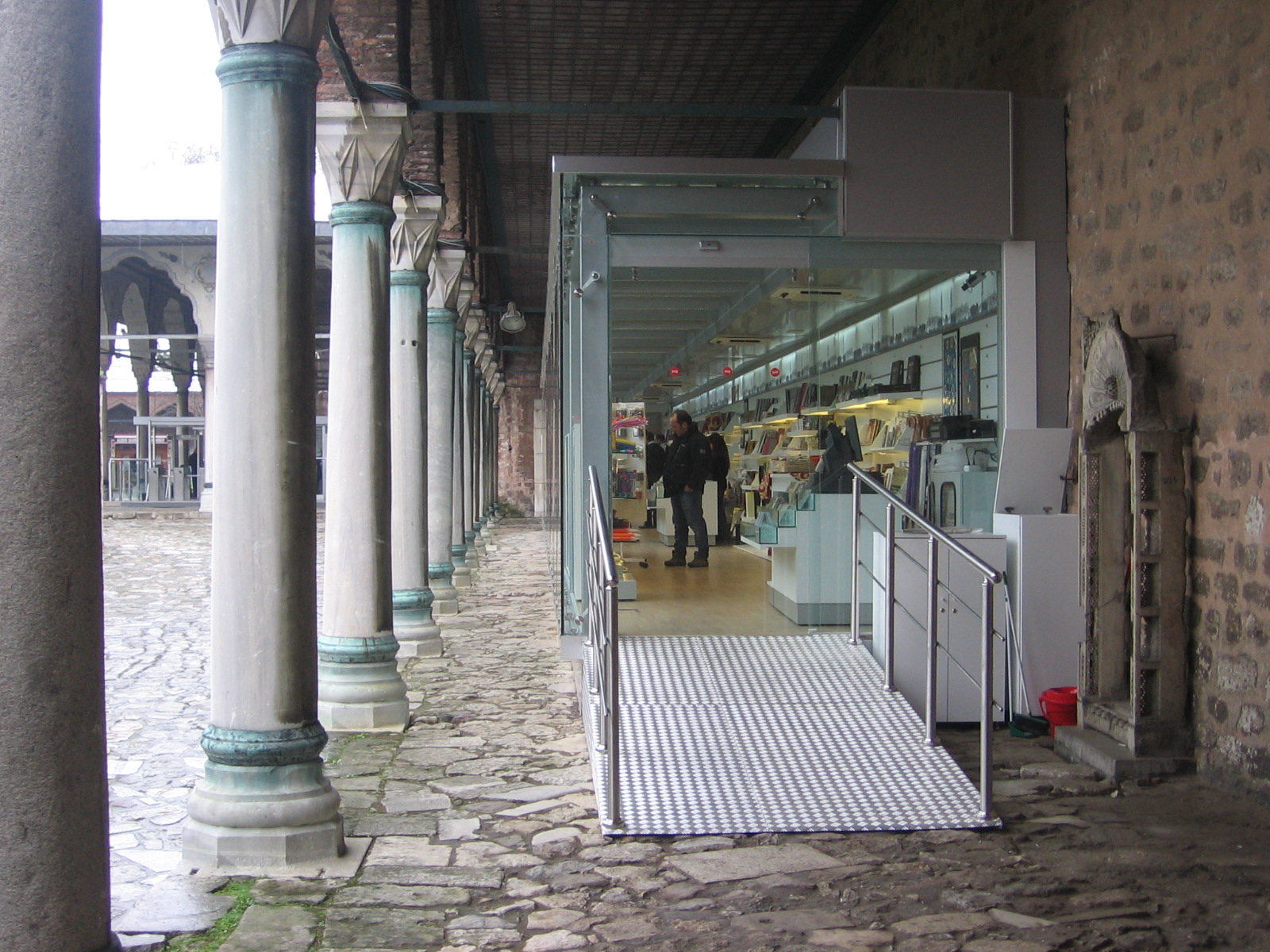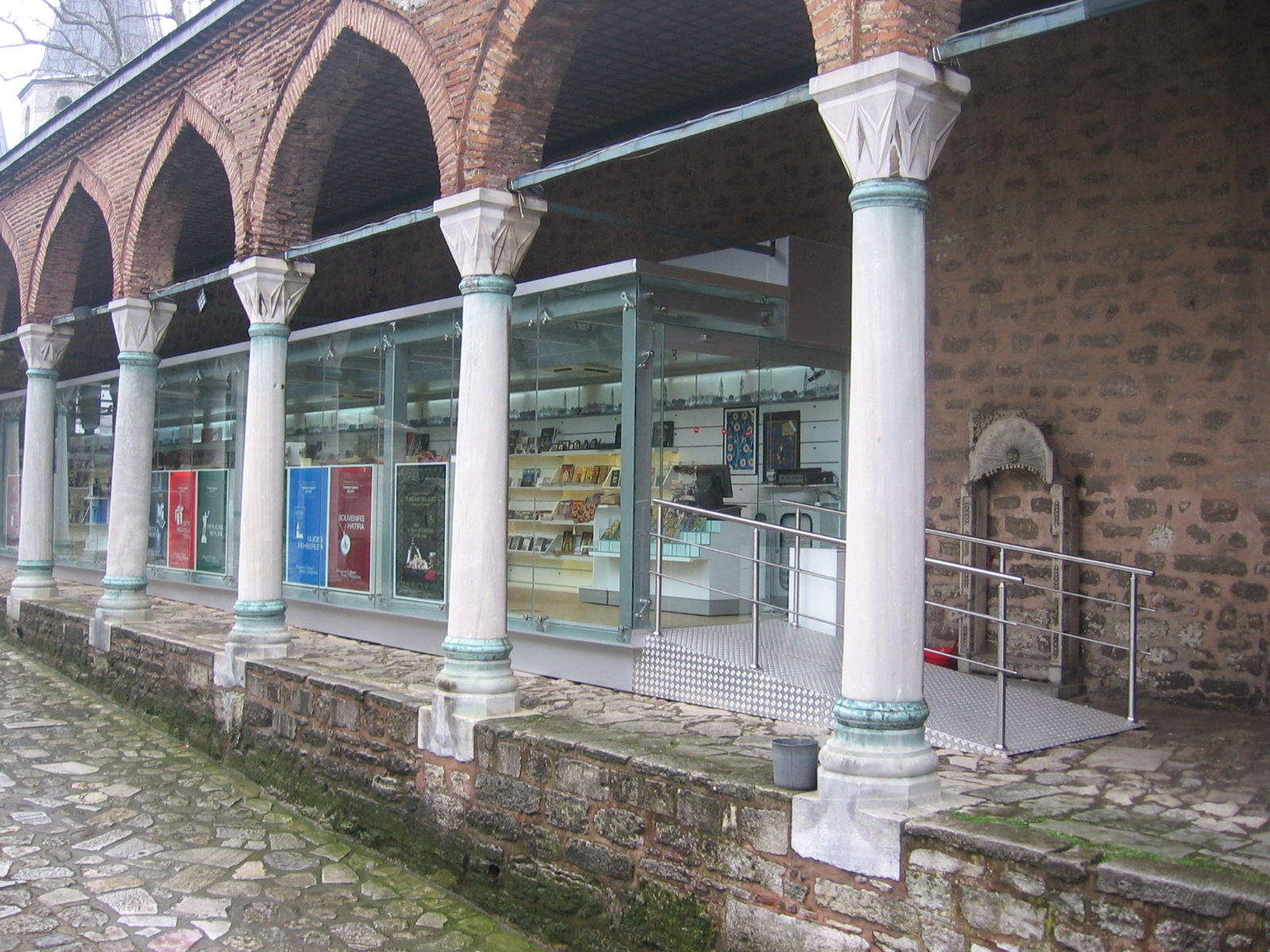 Kültür Bakanlığı bünyesindeki Topkapı Sarayı projemizde, tarihi dokuya zarar vermeden modern bir fonksiyon kazandırmak amacıyla hediyelik eşya alanı tamamen şeffaf bir cam yapı olarak tasarlanmıştır.