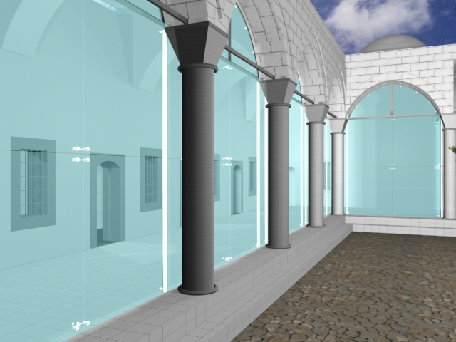 Tarihi dokuya uyumlu, şeffaf bir görünüm sunan bu uygulama, yapının estetiğini bozmadan cami girişinde ferah ve korunaklı bir iç mekan oluşturmaktadır.